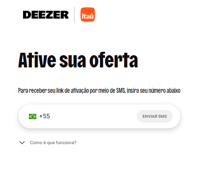 Note: If you do not receive the link to activate your offer, you can use this link here - Activate Offer. You can also visit the Deezer website, click on “Activate my partner offer” and then select Itaú. On the next screen, you must enter the phone number previously registered when subscribing to Combinaqui and follow the steps to create your Deezer account or link to an existing Deezer Free account.