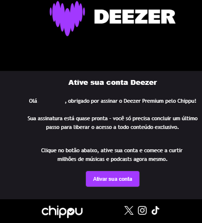 Lembre-se de que, se já possui uma assinatura Deezer ativa, é importante cancelá-la antes, para depois associar ao benefício da Chippu.